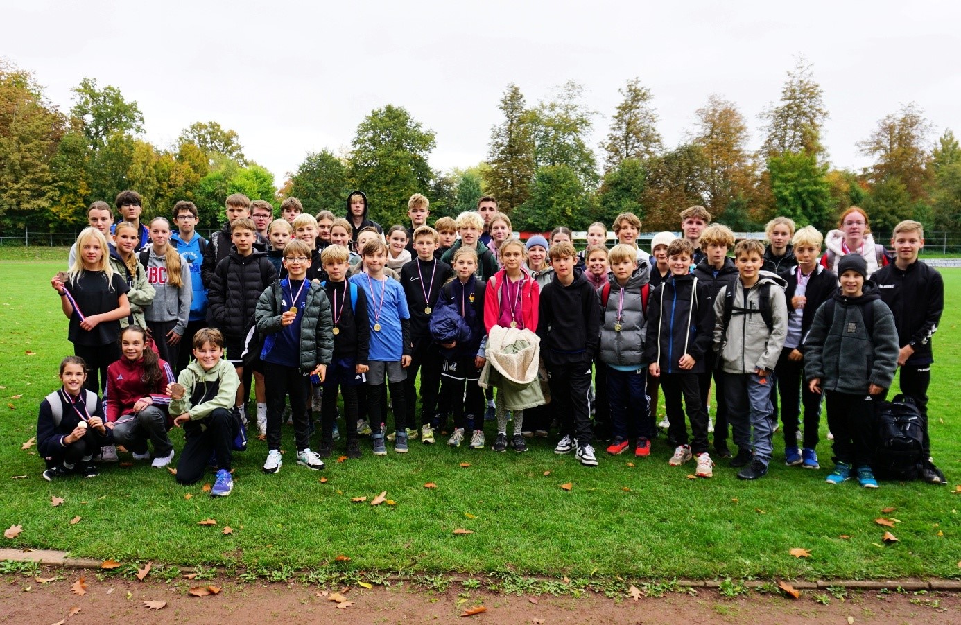 Mit 49 Kindern und Jugendlichen quetschten wir uns in den Bus nach Pinneberg, um uns mit den anderen Schulen des Kreises beim Crosslauf zu messen.