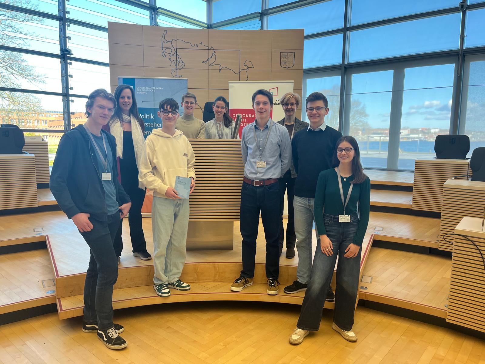Wieder einmal hatte sich das DBG zum Landesentscheid von „Jugend debattiert“ qualifiziert, der am 31.03.25 im Landeshaus in Kiel stattfand. Marie Brauer vertrat das DBG in der Altersgruppe Sek.I und Meik Bilmann trat in der Sek.II an. Leon Brandes, der sich auch für die Sek.II qualifiziert hatte, musste wegen Erkrankung leider passen.